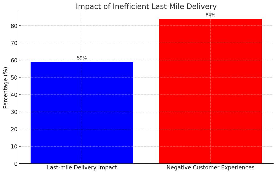 Last-mile delivery is the final link in the supply chain, and e-commerce companies still face issues that result in increased operational costs. In the United States, 59 % of companies reported that last-mile delivery is the most inefficient in their supply chain. It has detrimental impacts such as loss of consumer loyalty and reduced profit margins in the long term. Data shows that 84% of clients said they would avoid shopping with retailers following a bad delivery experience. Addressing the last-mile delivery issues enhances a company’s competitive edge due to increased market share.